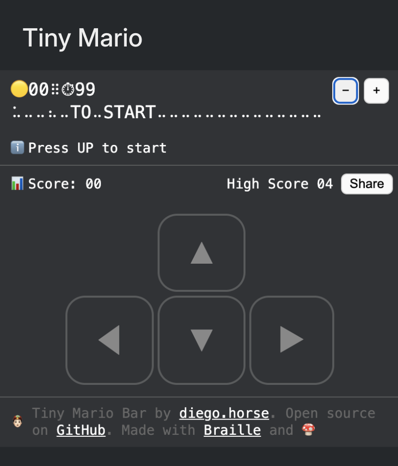 | Tags | 2D, braille, browser-url-bar, Experimental, mario, Pixel Art, Retro, Short, Singleplayer, weird |